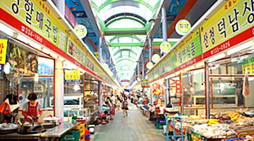 특화된 점포 형성 : 시장 골목별 야채·과일거리, 묵자거리, 잡화거리, 의류거리, 약초거리