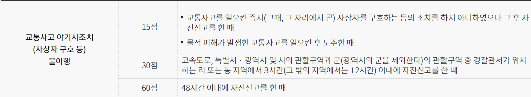 교통사고 조치 등 불이행에 따른 벌점 기준