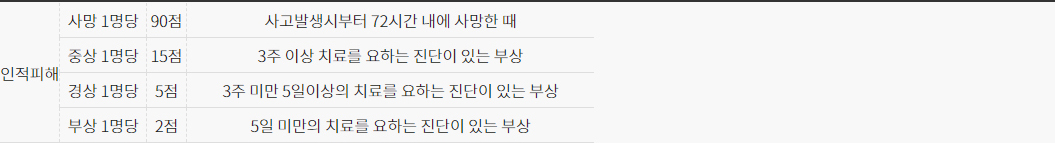 교통사고 결과에 따른 벌점 기준