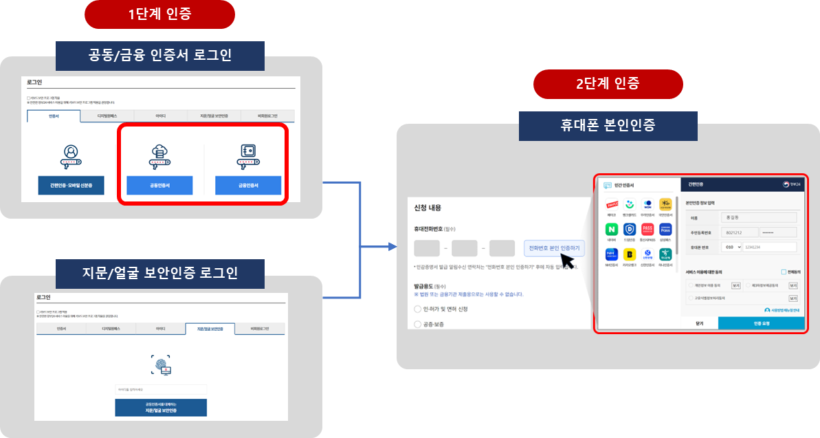 ※ 복합인증 : 공동 또는 금융인증서 + 휴대폰 본인인증