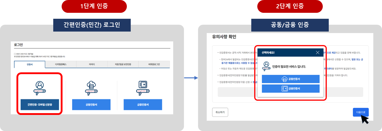 | 간편(민간)인증 | 공동/금융 인증 |
